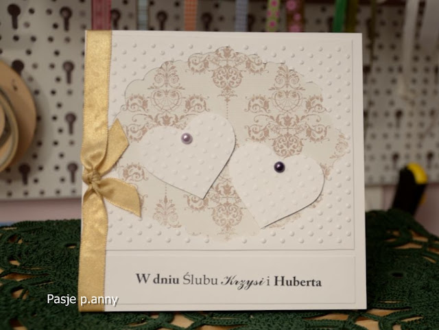 Trochę mnie tu nie było. Nie wiem jak Wam ale mi ciągle brakuje czasu. Najpierw kończyłam projekt zawodowy a potem... sama nie wiem jak czas minął... Jednak nie marnowałam go i trochę nowości stworzyłam. Dzisiaj pokaże moje kartki ślubne. Niby śluby dwa ale zamówień na kartki więcej!